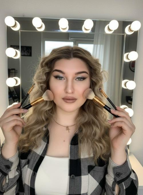 19. Промт на фото изображена молодая женщина с выразительным макияжем и элегантной причёской.
