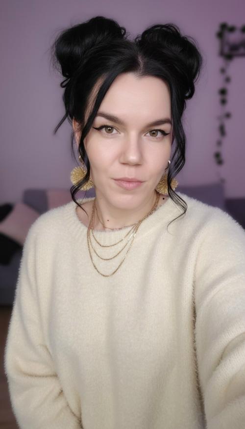 4. Используя мое фото создай фото крупный план молодой женщины с яркими карими глазами и волосами как на фото, сидящей в салоне автомобиля.