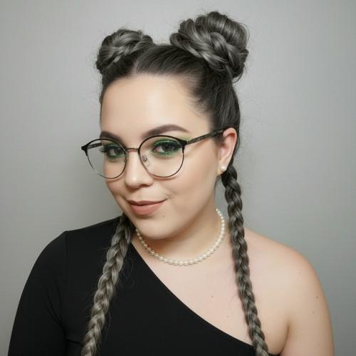 24. Промт на фото изображена молодая женщина с выразительным макияжем и элегантной причёской.
