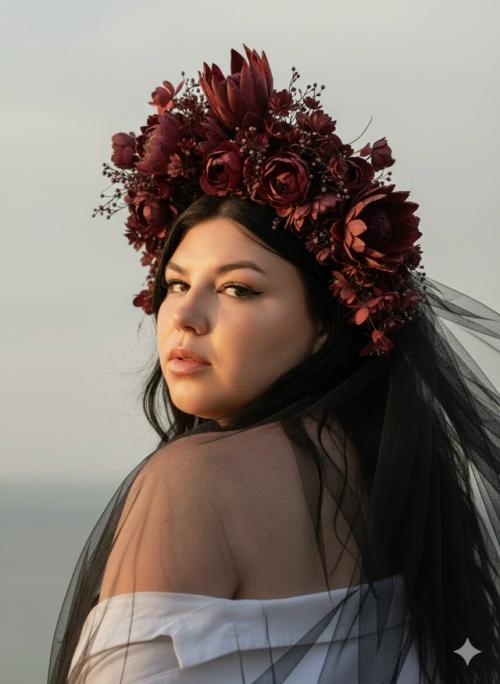11. Промт на фото изображена молодая женщина с выразительным макияжем и элегантной причёской.