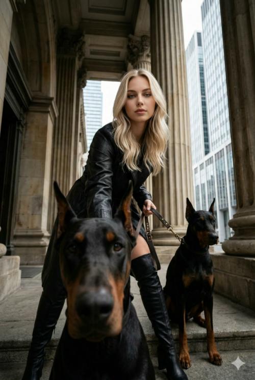 1. Создайте изображение, не изменяя черты лица женщины, стоящей между двумя доберманами.2. "Хочу Семейную Фотосессию", - объявила я за ужином: "чтобы красиво.